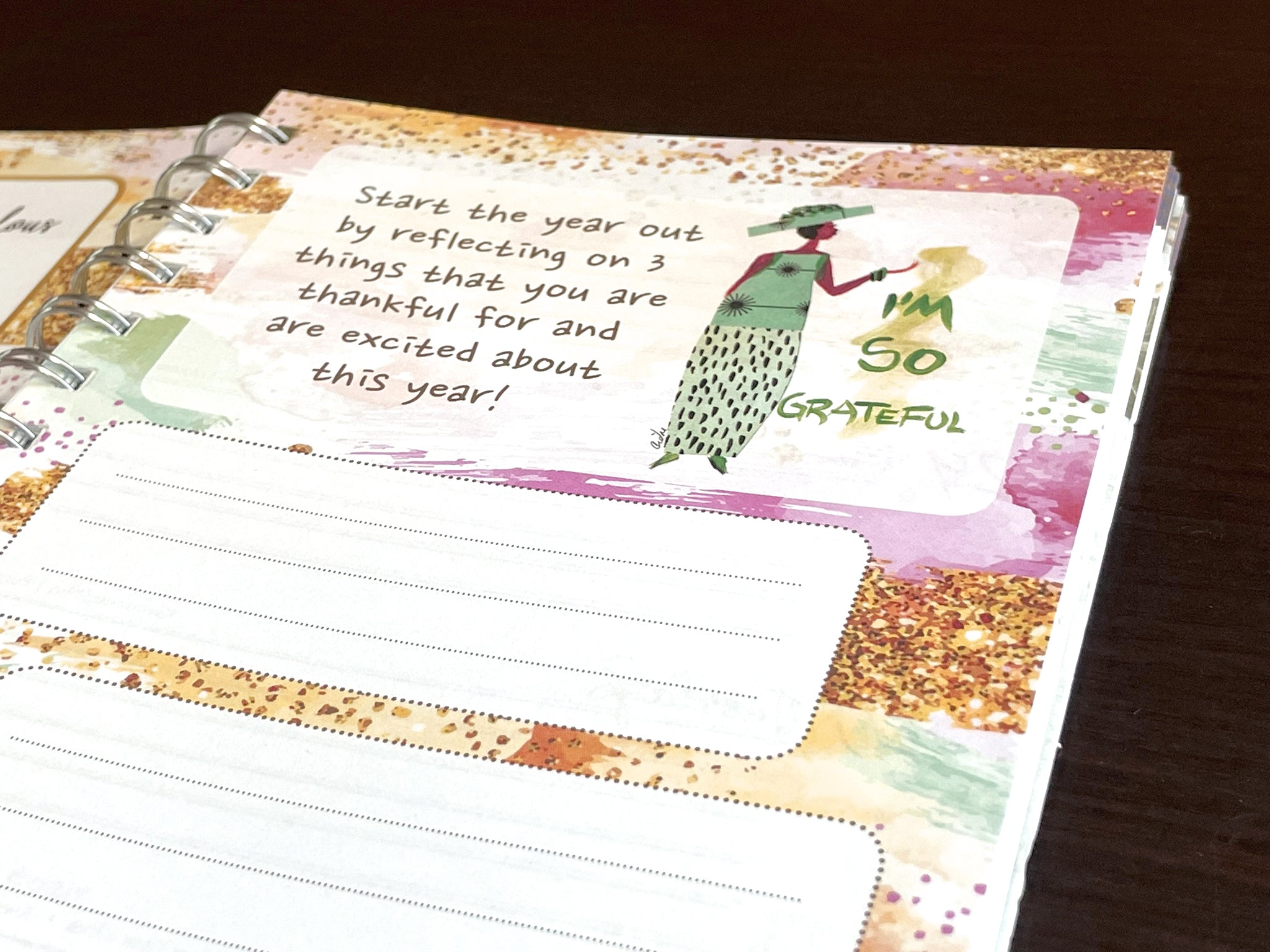 This 2026 African American Weekly Inspirational Planner features beautiful art by Cidne Wallace, the creator of the Girlfriend's calendar. Features Bible Scriptures, At-a-glance, Monthly View & Weekly Calendar, Motivational Art, Fun Facts on Notable African American Women in History, Health Tips and Activities, Pages for Yearly Goals, Pages to Keep Track of Birthdays, Activities for Self-Reflection, Tips for Loving Yourself and Your Sister-Friends!, and a Worksheet for Budgeting.