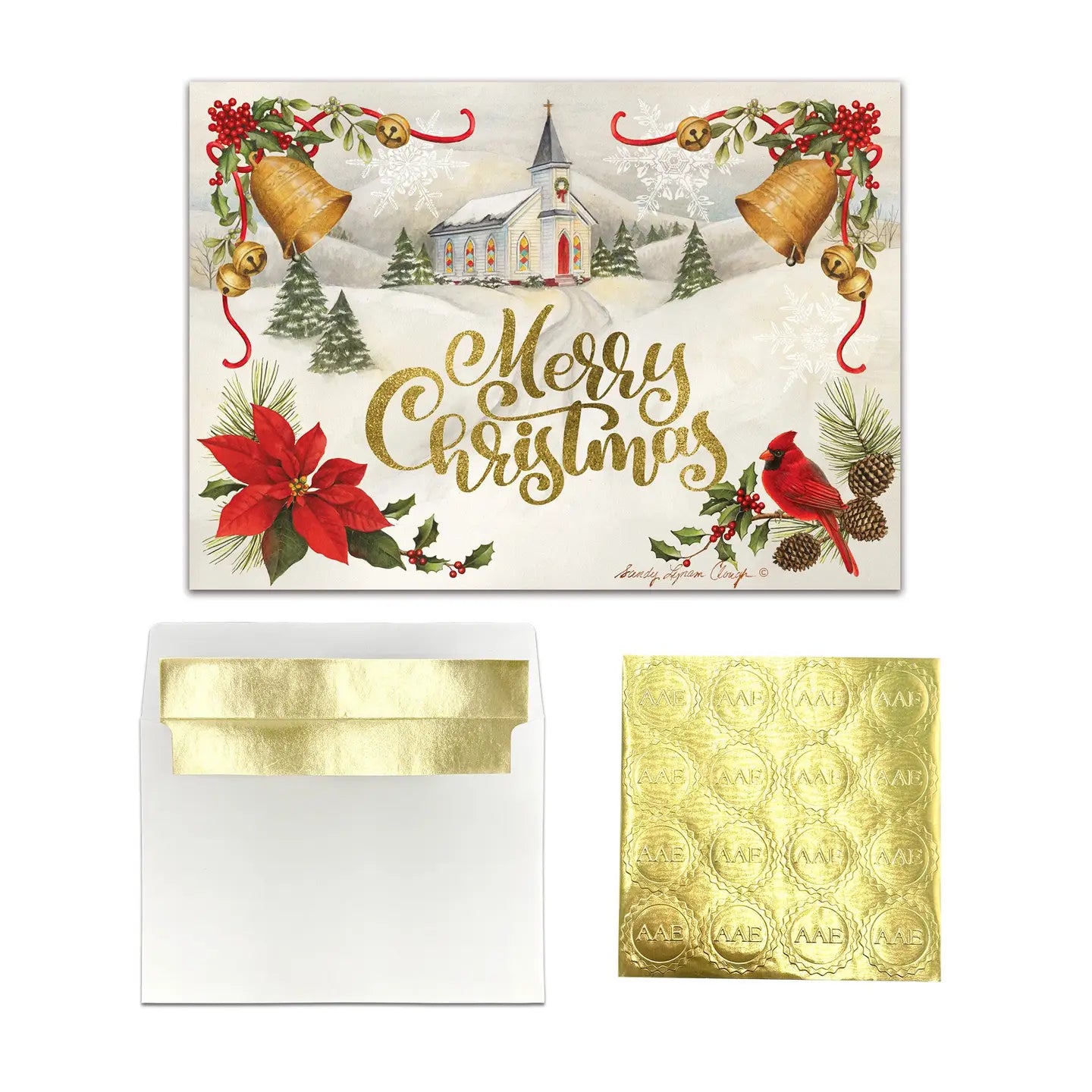 Features Inspirational Christmas Cards 5 x 7"Boxed Set15 Embossed Greeting Cards Coordinating Foil-Lined Envelopes Gold Sticker Seals